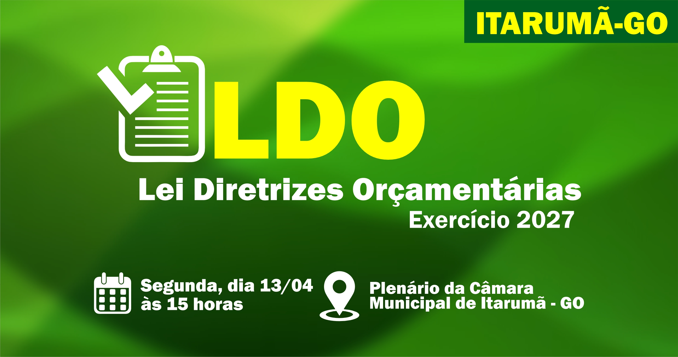 Prefeitura de Itarumã convida população para audiência pública da LDO 2027