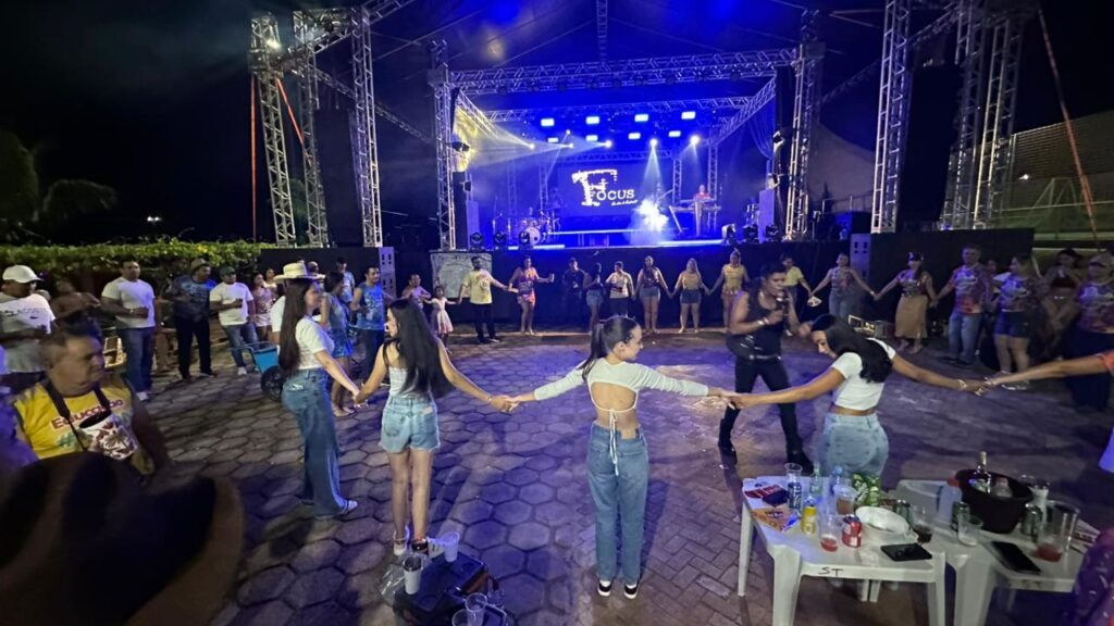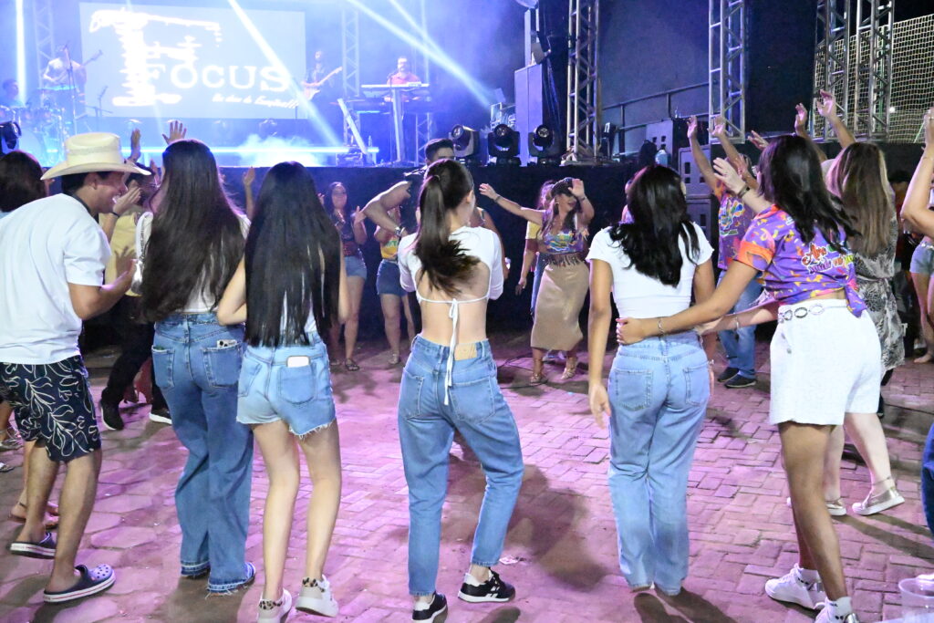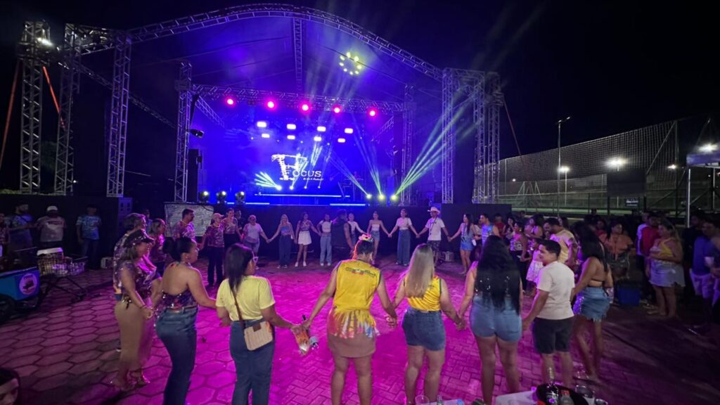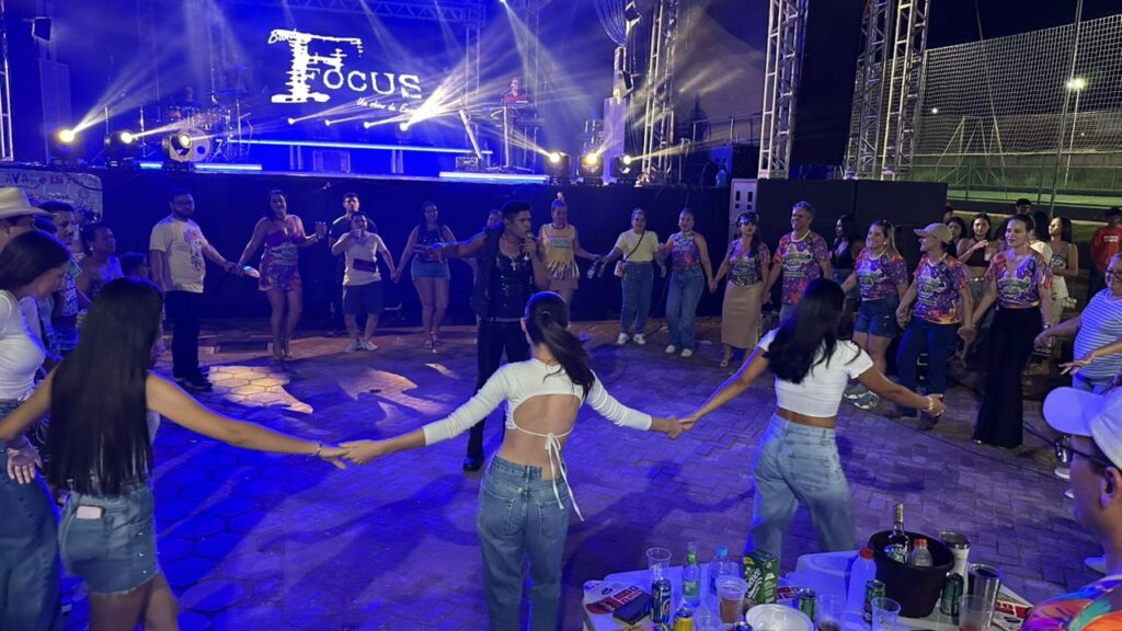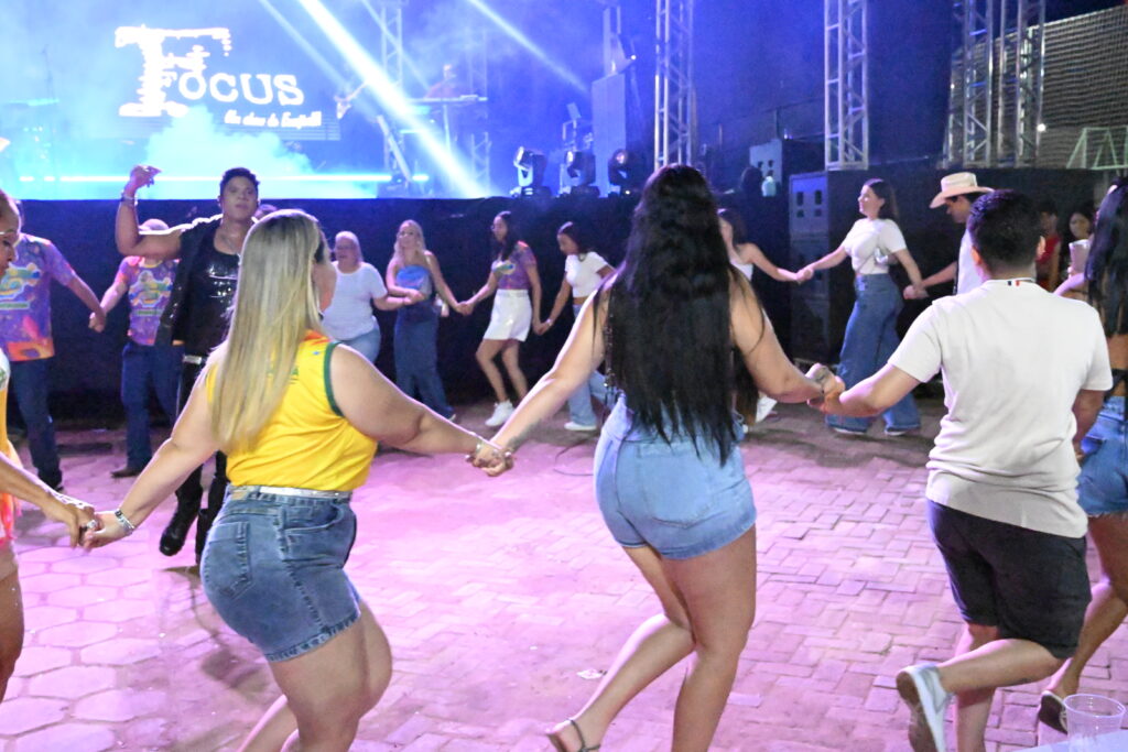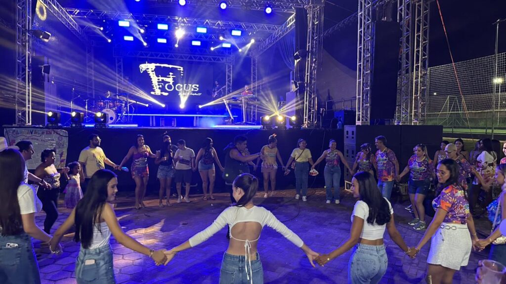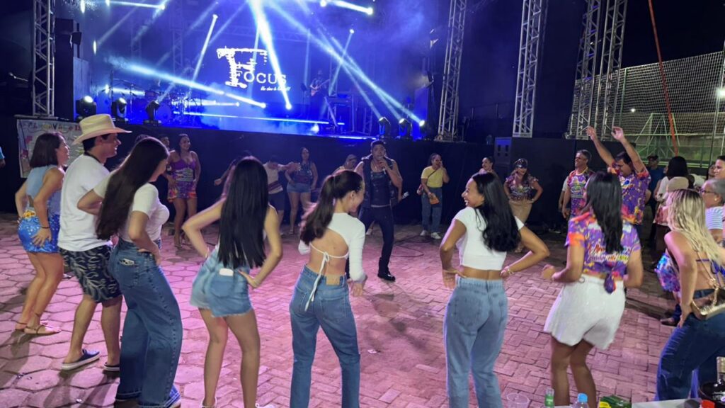 A programação contou com a apresentação da Banda Focus, que animou o público com um repertório vibrante e cheio de sucessos. O DJ Hélio Vieira também comandou a festa, mantendo o clima de carnaval e garantindo que a energia permanecesse contagiante durante toda a noite.