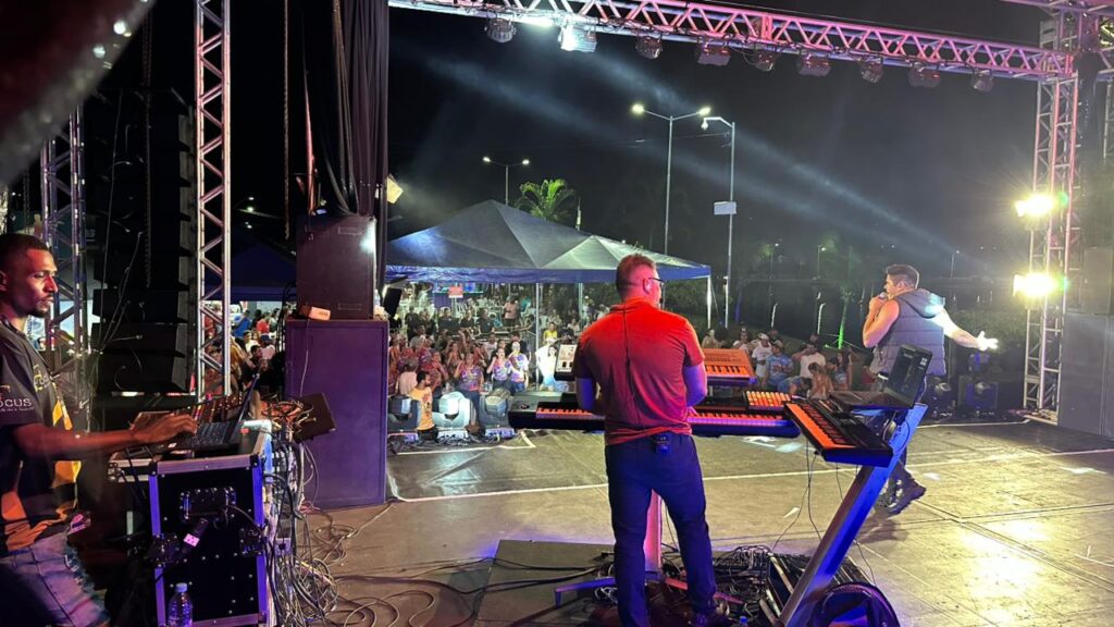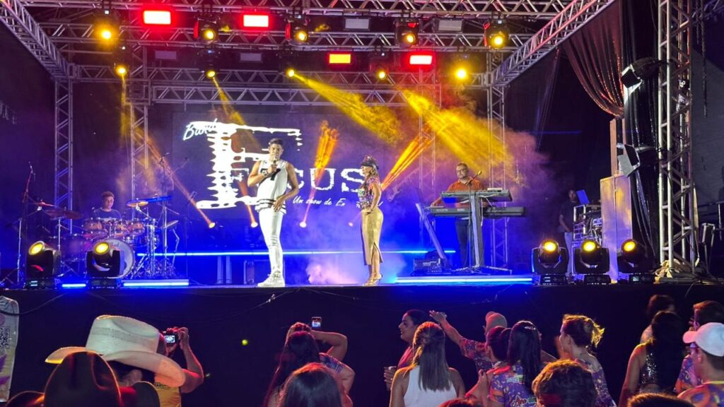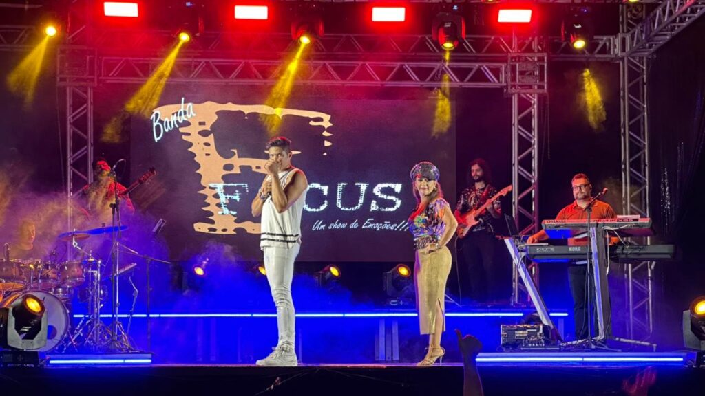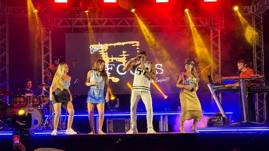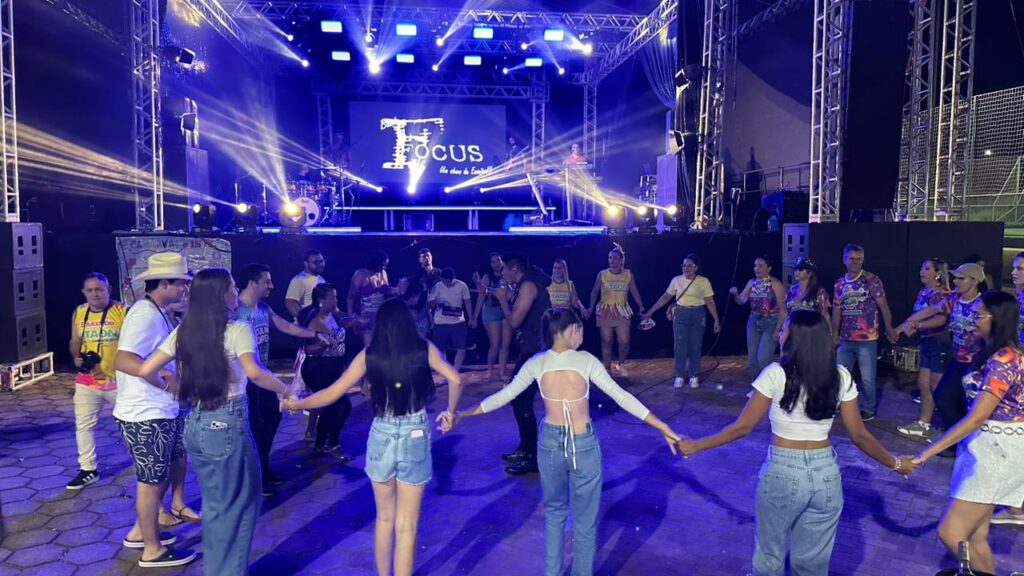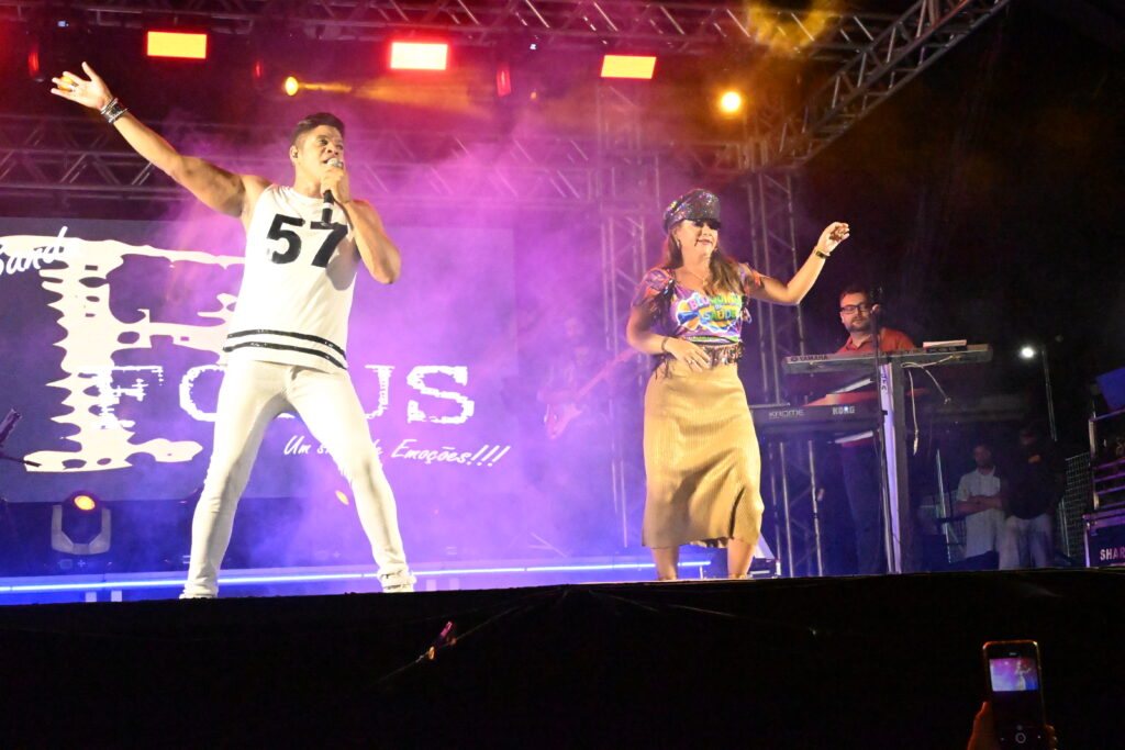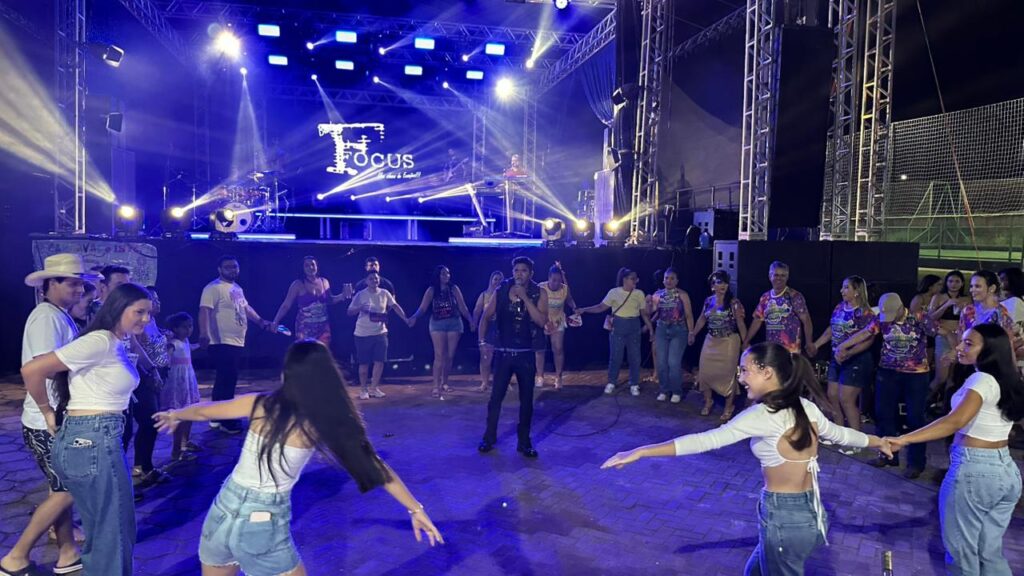 A programação contou com a apresentação da Banda Focus, que animou o público com um repertório vibrante e cheio de sucessos. O DJ Hélio Vieira também comandou a festa, mantendo o clima de carnaval e garantindo que a energia permanecesse contagiante durante toda a noite.